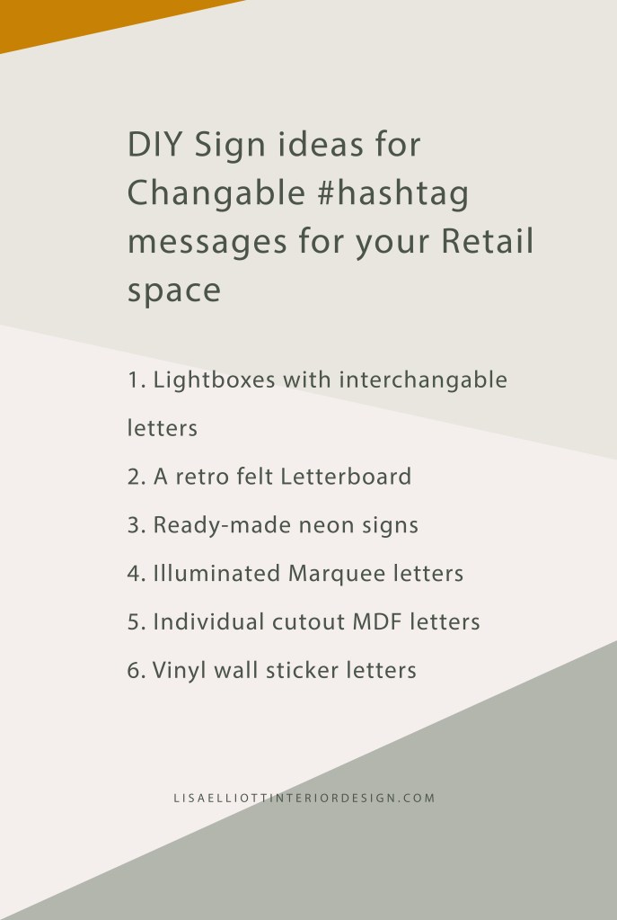 Lightbox, letterboard, neon sign or marquee sign – beware that all different signs have a very different feel, and may not suit your brand, however some like a Lightbox are easily changeable for a bit of fun to add a hashtag or two.