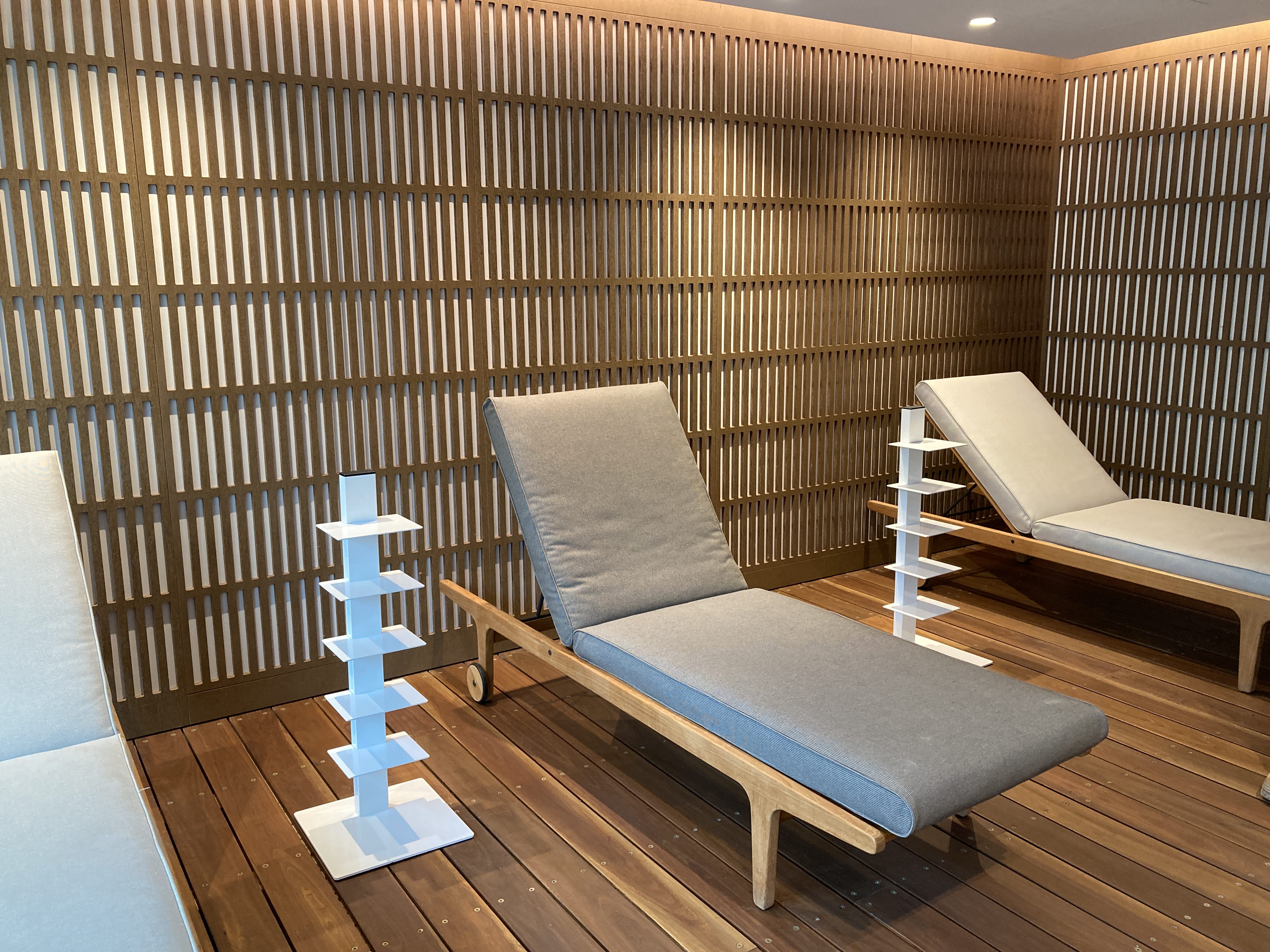 In the site below, existing look, feel and finishes from Lobby and the Health Club (oiled Blackbutt timber battens, timber floorboards, rose gold mirrors) as well as identifying key problematic areas in the new site such as the very narrow entry, extremely low ceiling height restrictions, and very thick concrete walls surrounding the space that restricted any new services entering the space. In addition, key views from windows, direction of the sun, the fragrance of the oiled Blackbutt and other ‘ambient’ elements are also observed.