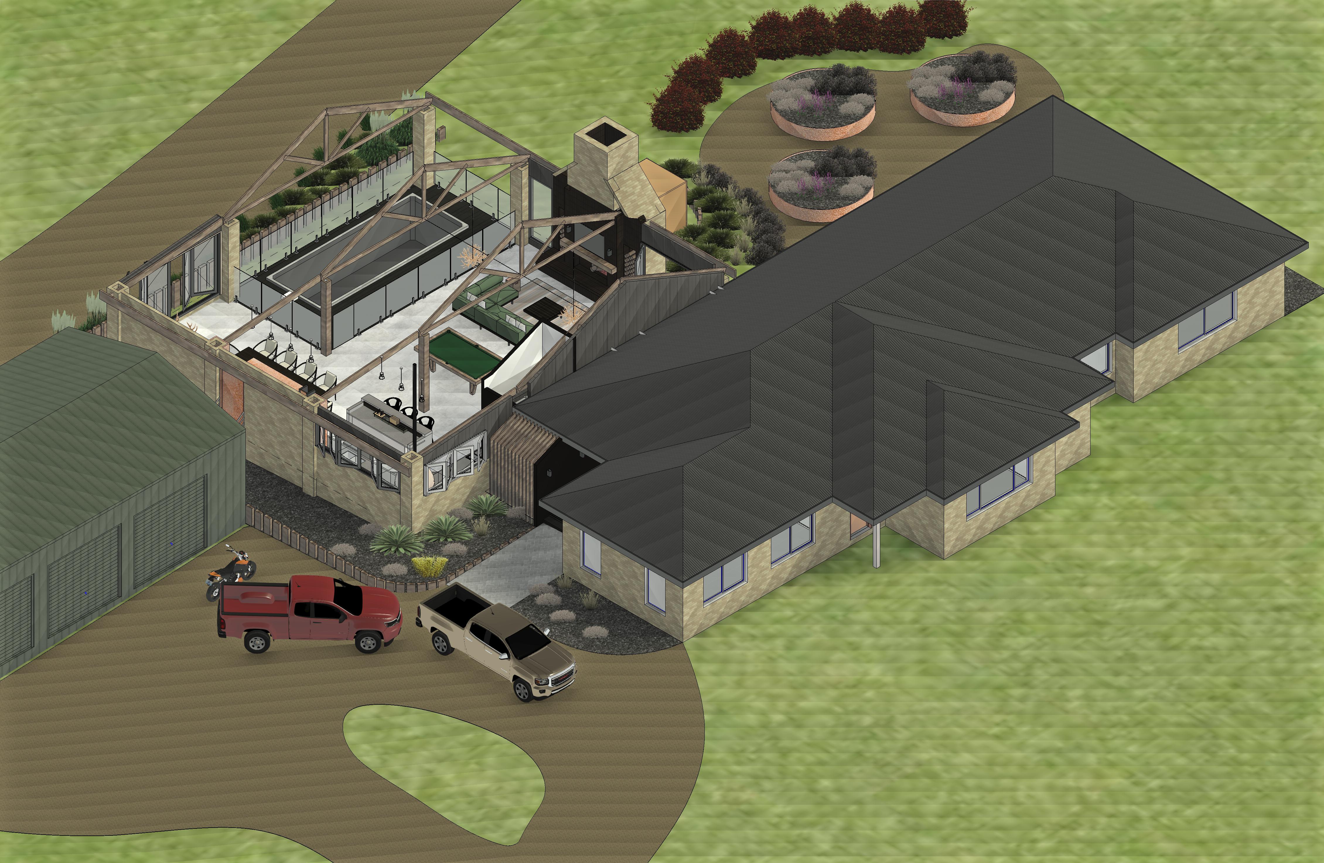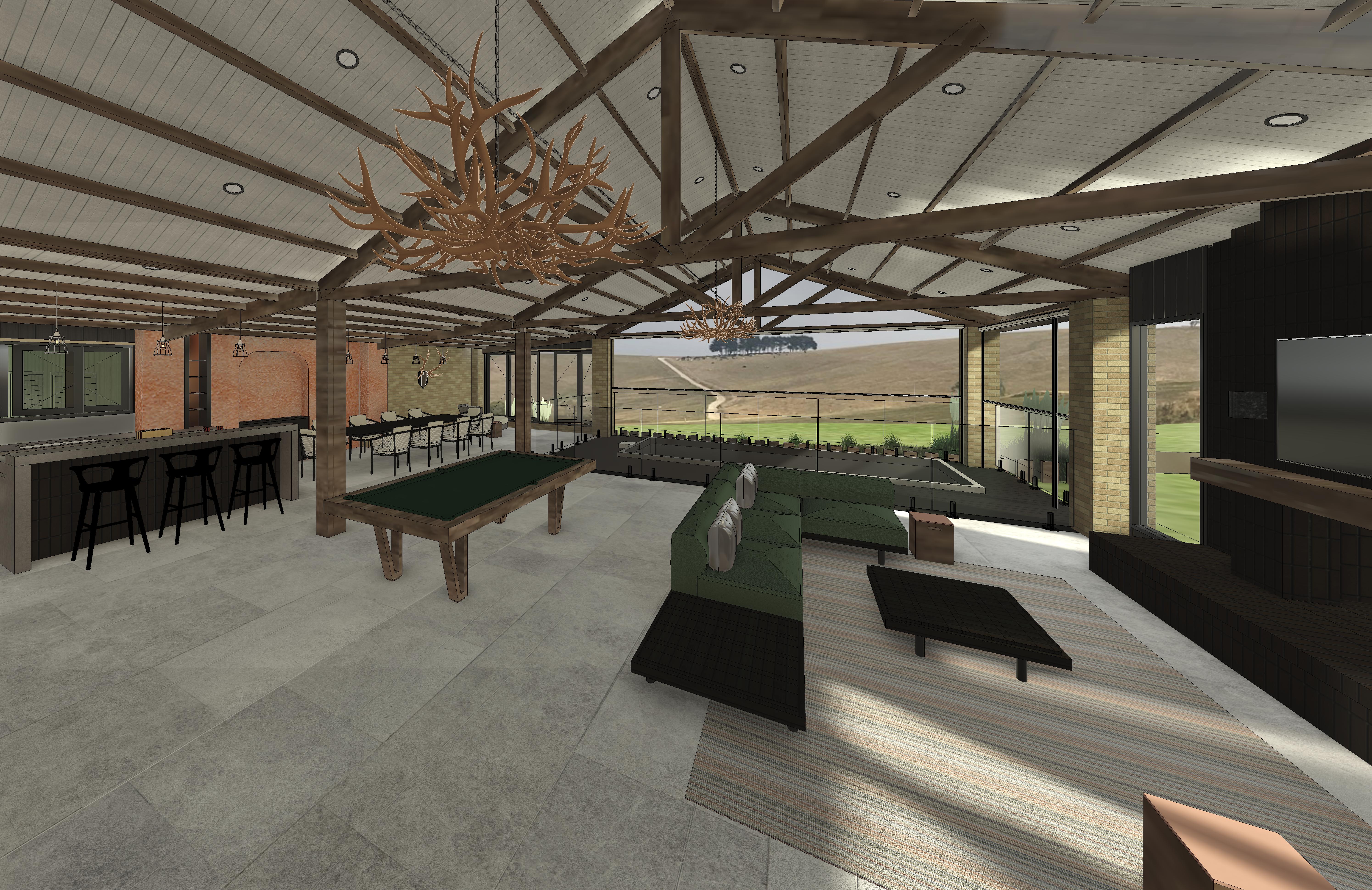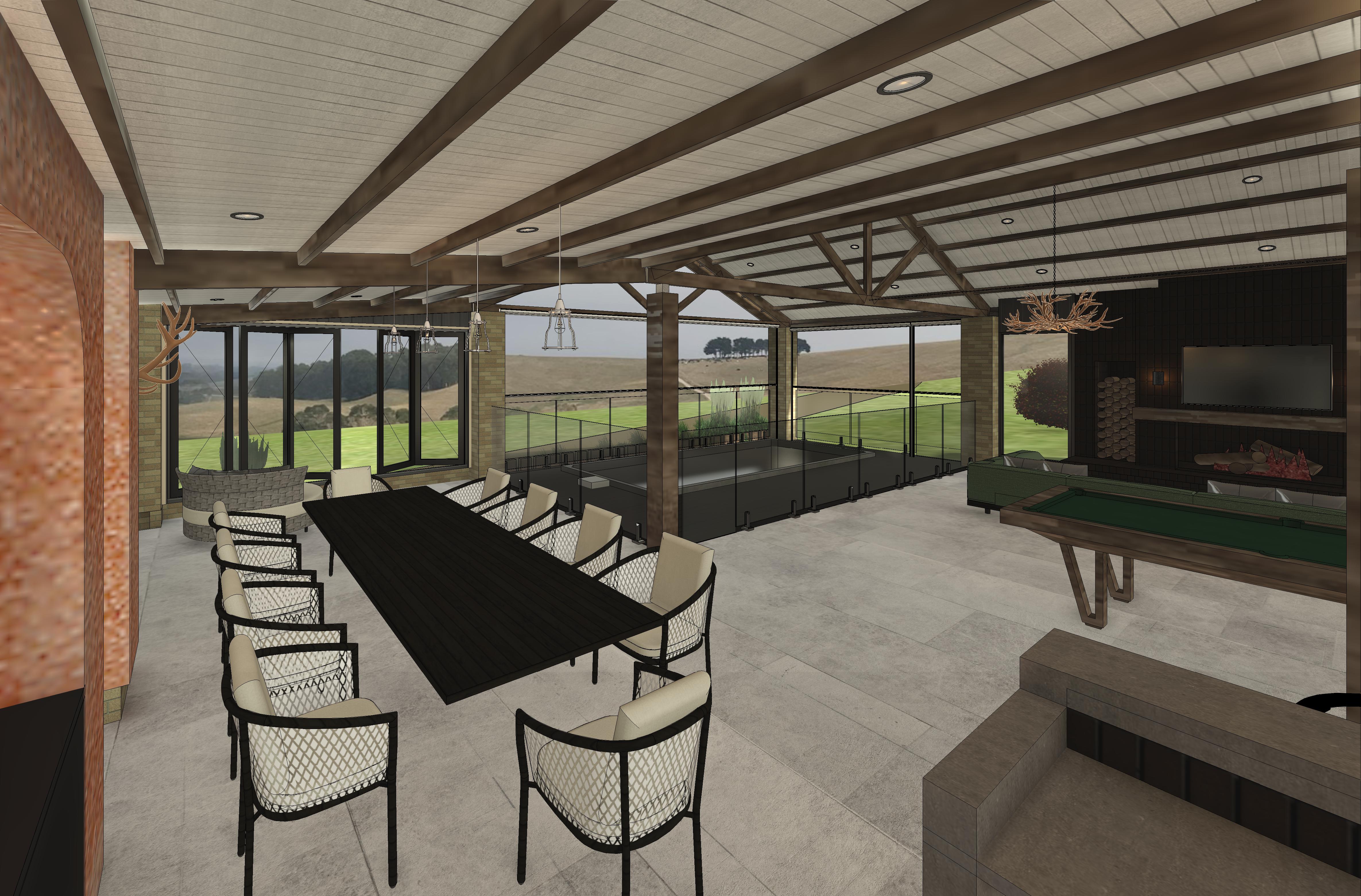 We are excited to announce our latest project currently in the concept design stage: a thoughtfully designed modern luxury alfresco space for a working dairy farmhouse, blending the charm of country aesthetics with contemporary luxury. This outdoor sanctuary will feature an alfresco kitchen equipped with a wood fired pizza oven and BBQ, seamlessly integrating dining and lounge areas complete with an open wood fire for those cozy, rustic evenings. Our signature attention to detail and curated selection of materials ensure a refined yet inviting atmosphere, highlighted by stunning deer antler chandeliers that add an elegant touch to the space.