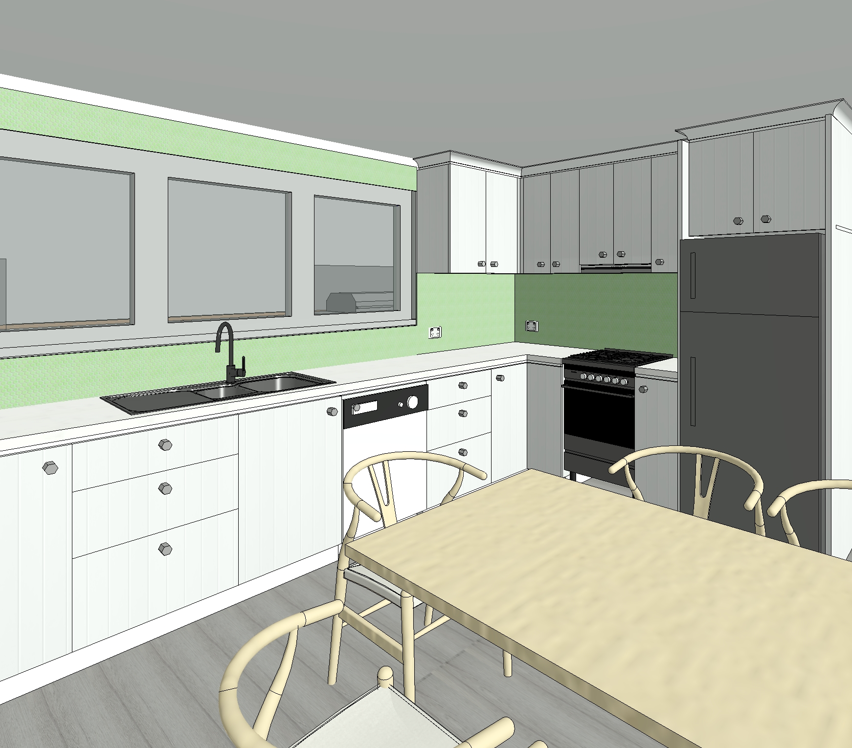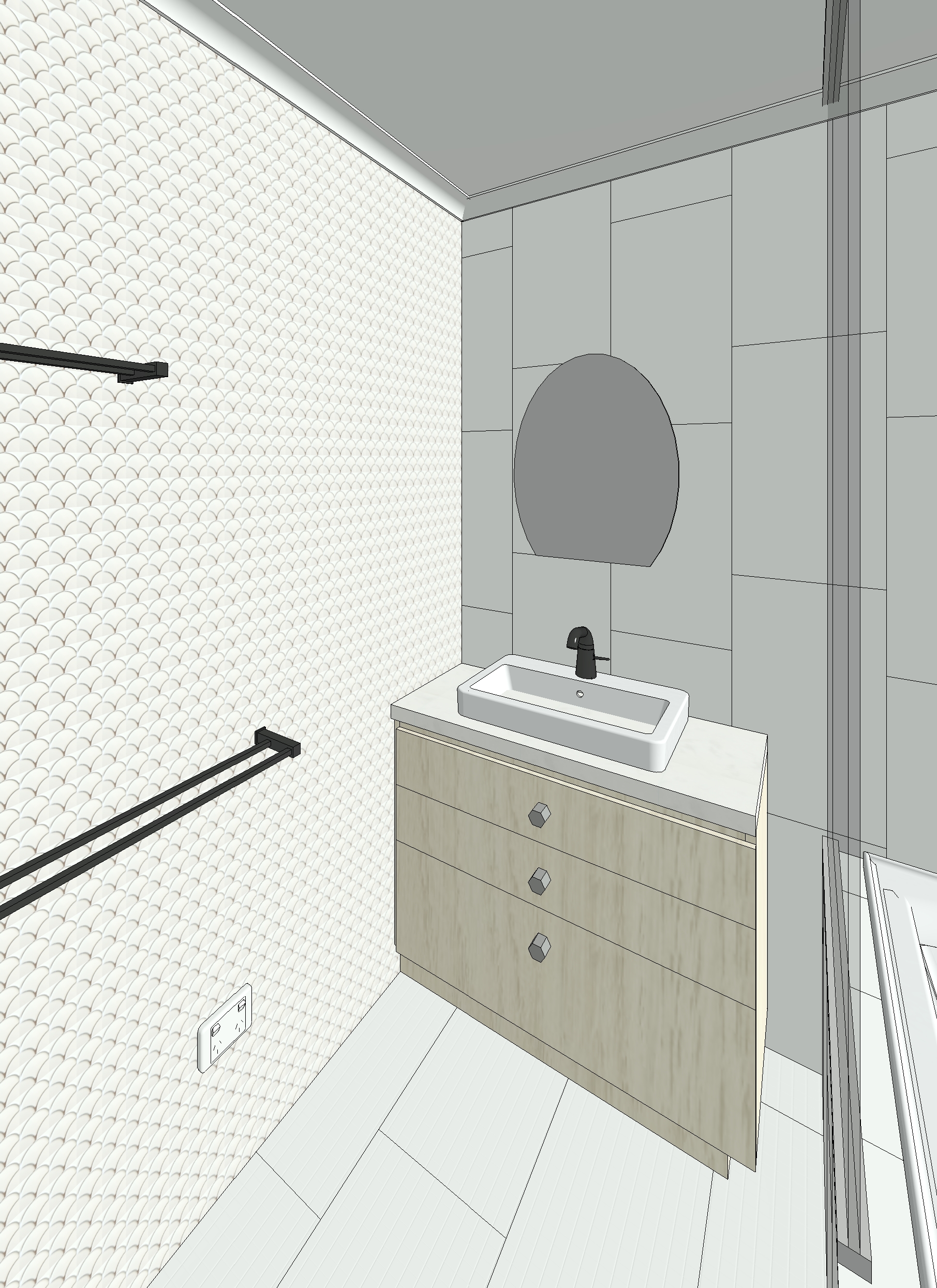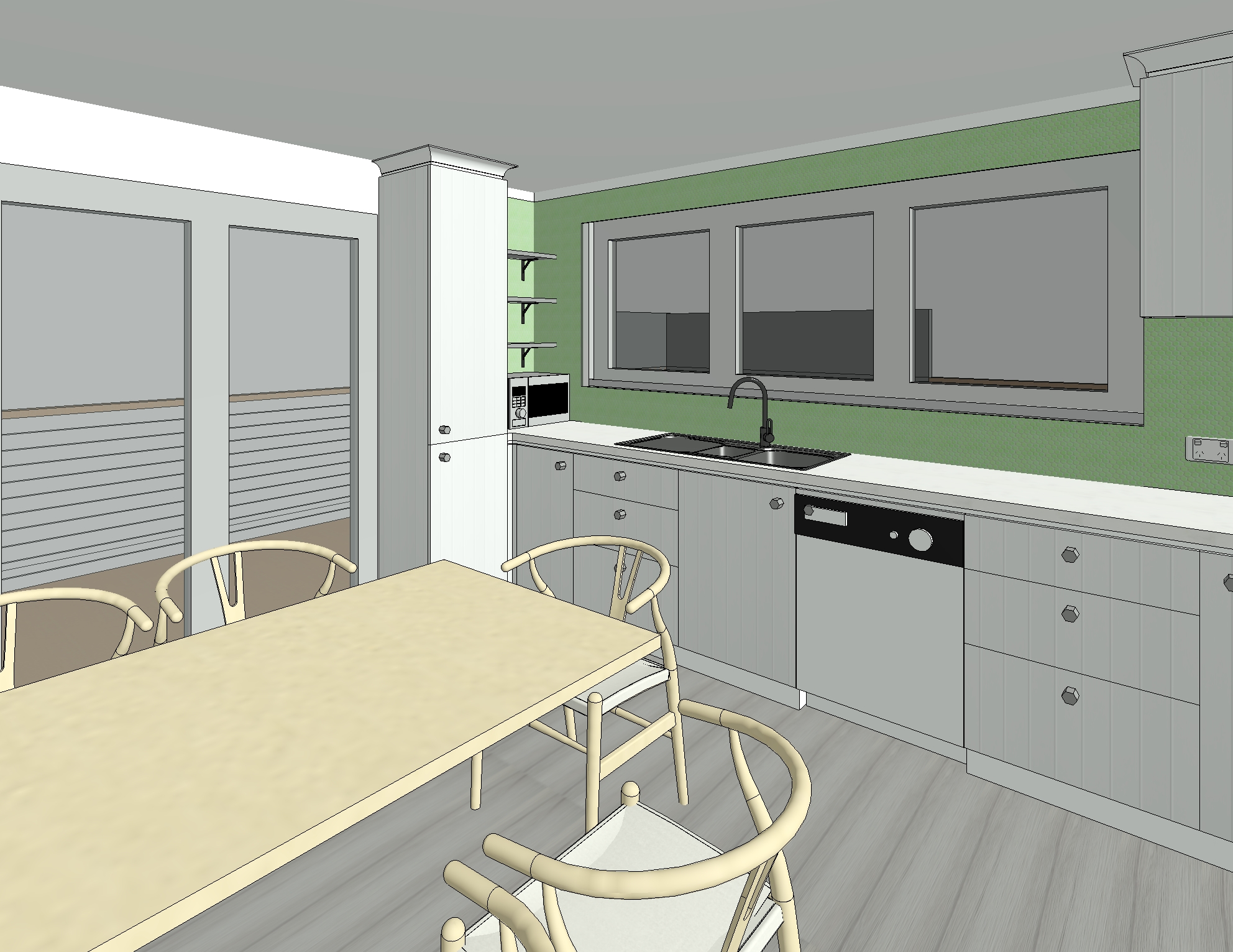 Once the layout, conceptual design and finishes were decided upon, 3-dimensional views were created to fine-tune the design, to help the Home Owner visualise the design. Once the design is finalised, full construction drawings are developed from the 3-dimensional model.