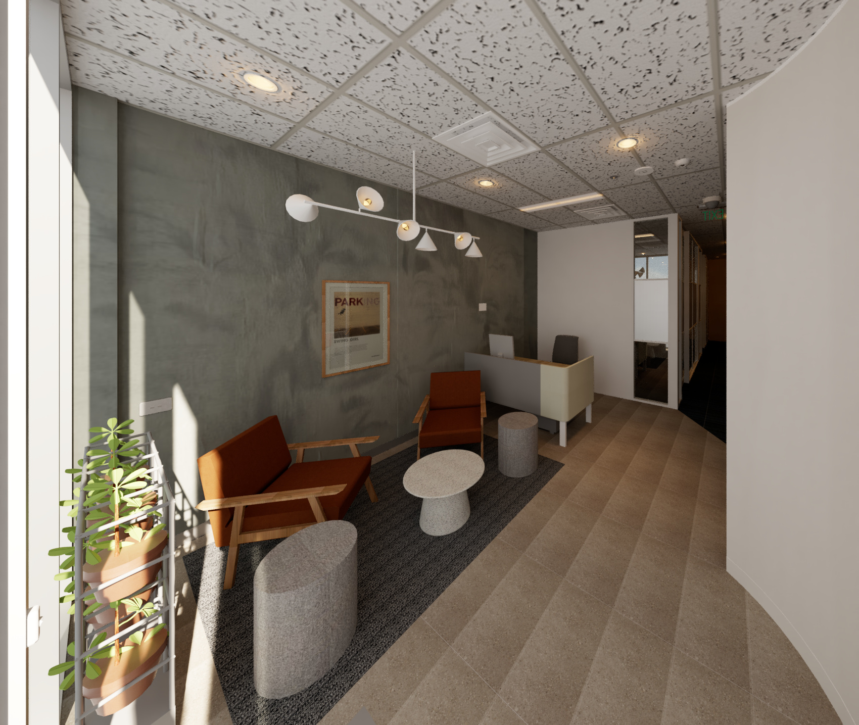 Our Client’s Brief for their small office interior design was to fit a waiting area, meeting room, 4 small offices, a storage / printer area & lunch area in their new 88 square metre retail space.