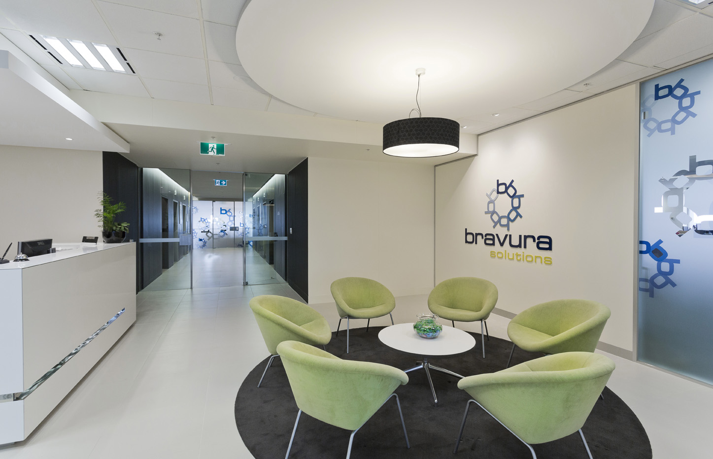 Bravura Solutions are a leading global supplier of finance software, business & strategic consulting services. Bravura occupied two floors of their existing tenancy, having gradually expanded into neighbouring tenancies, resulting in staff displaced over multiple floors and occupying spaces which where not functional to their working requirement. Bravura wanted to accommodate all staff on one level in their new tenancy. This was also an opportunity to roll out the company’s fittest guidelines that had previously been established for the Sydney office.