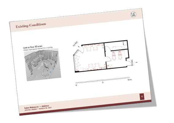 - Lisa will conduct an Initial Site Survey of your new tenancy (assuming the new site is within walking distance & on the same day), or existing tenancy if you’re doing a reno. We’ll discuss your initial thoughts & aims regarding the new space. You’ll need to have a good (reasonably accurate, to-scale, drafted) existing conditions plan available for us to work with; contact us if this is not available.